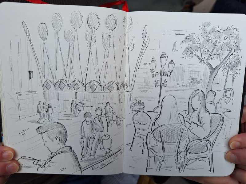 El pasado sábado 6 de diciembre estuvimos dibujando en la plaza junto a Santa María, llena de artefactos que ya anuncian las navidades, que fueron el objeto de nuestra atención. A la cosecha del día se suman los dibujos de la semana 49.