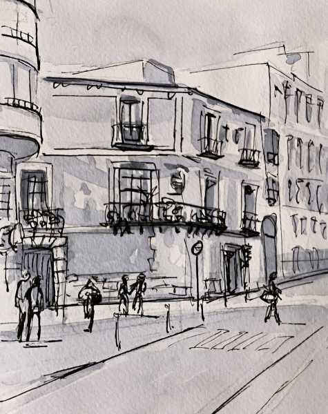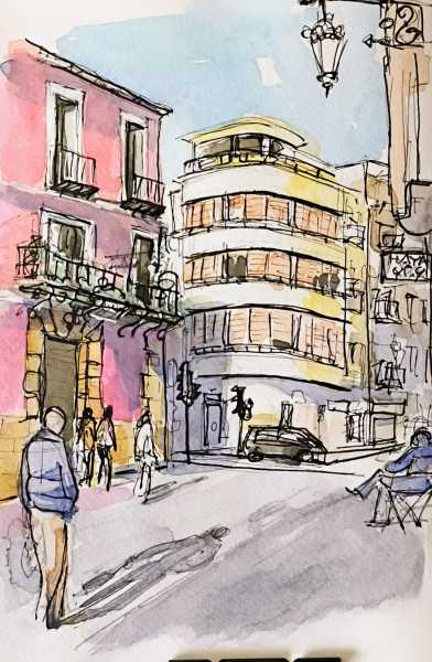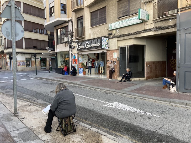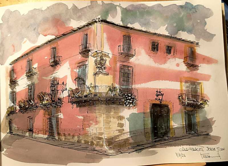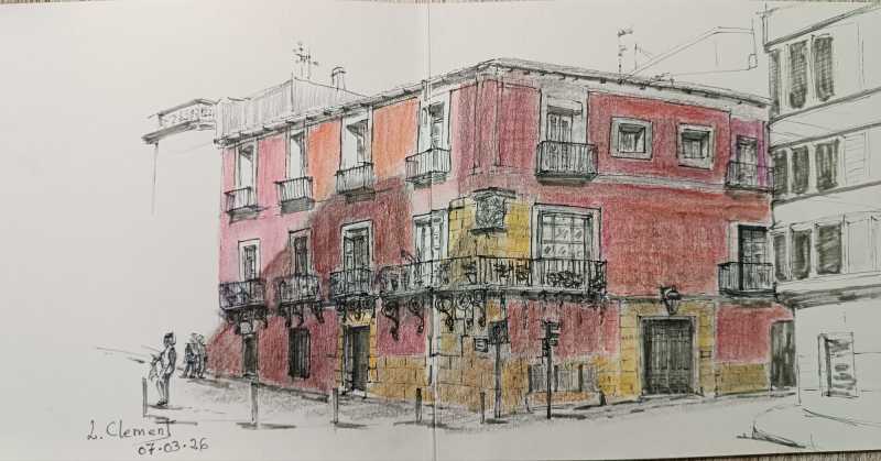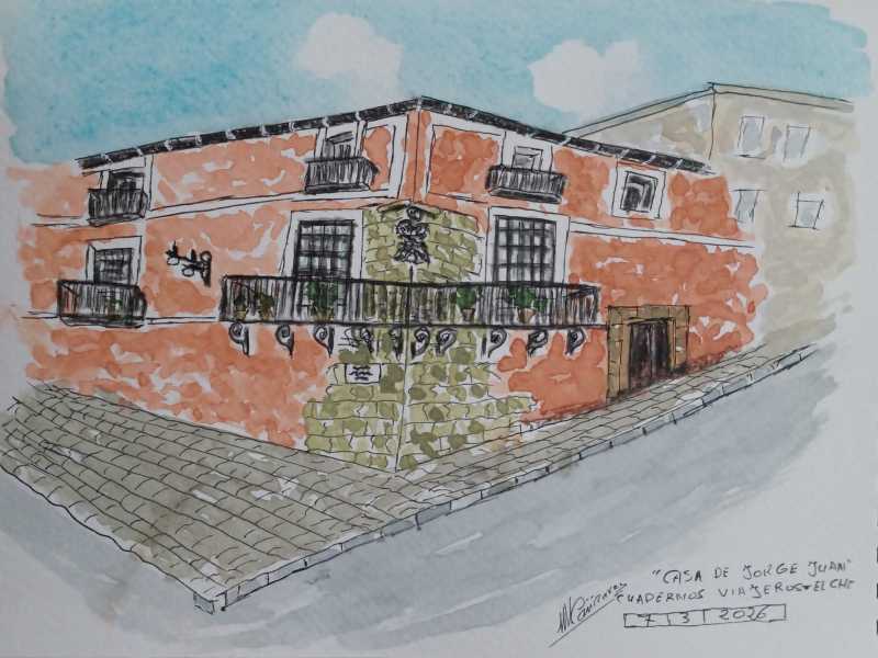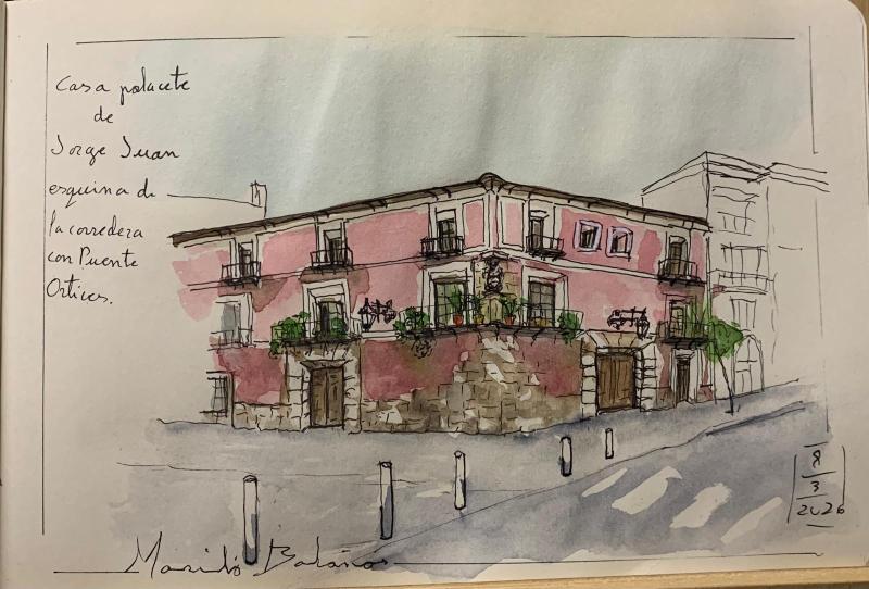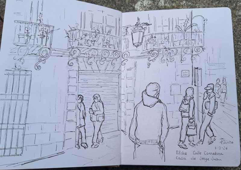Continuando la colaboración con la Asamblea Amistosa Literaria de Elche, el pasado sábado, 7 de marzo, dibujamos la casa-palacio de Jorge Juan, para seguir documentando los lugares ilicitanos relacionados con la familia Santacilia.