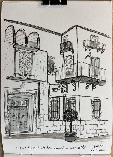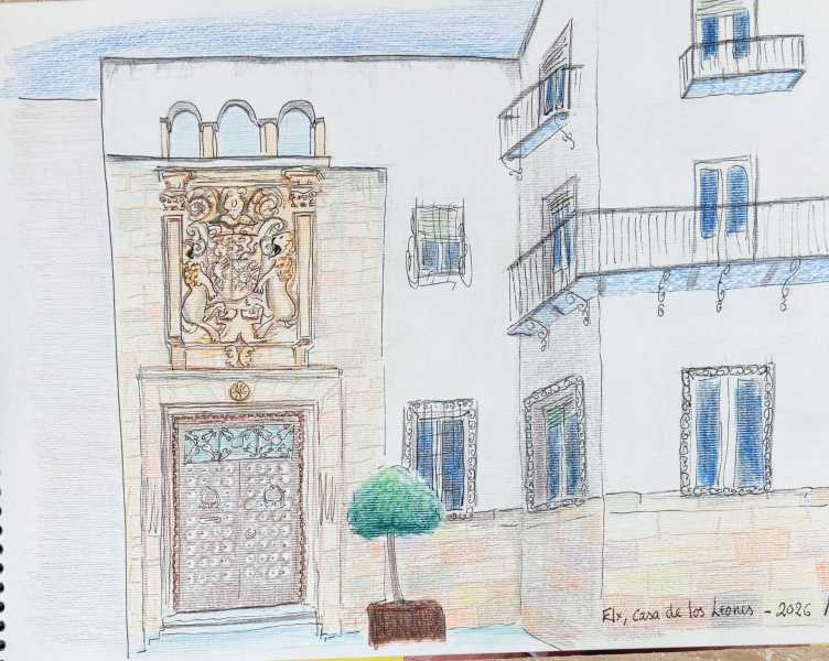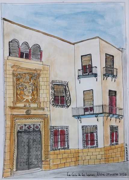 Siguiendo con el proyecto de dibujar lugares relacionados con Jorge Juan de Santacilia, el pasado sábado, 21 de marzo, estuvimos dibujando la casa de la noble familia Cornellà, en la calle Fira, Elche. Como es habitual, también aparecen los dibujos recogidos en la semana, en este caso, la duodécima.